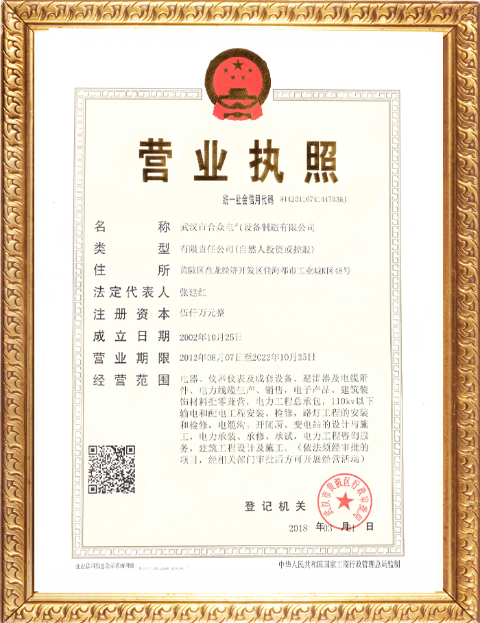 武汉市合众电气设备制造有限公司,注册资本:贰仟壹佰万元,登记机构:武汉市黄陂区行政审批局