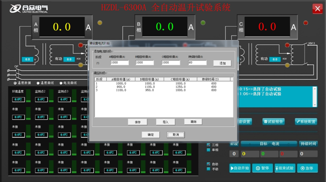 电力检测设备有的在使用前需要设置好参数,下面合众电气技术专家举例介绍,全自动温升试验装置可设置阶段性试验。