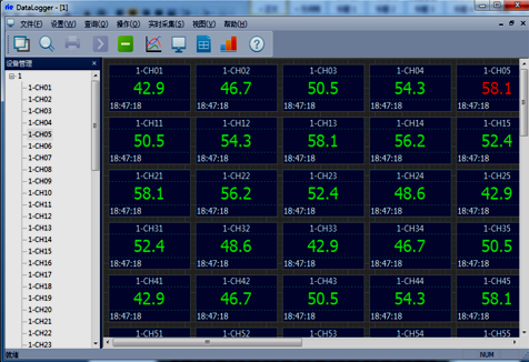 点击保存回到系统主界面,如图2-16所示。此时在数显窗口中可以看到第三通道数据超出系统设置的上限(数据和上限值都以红色显示),系统会每隔20s向管理员的手机发送一次信息。