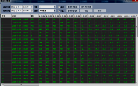 点击主菜单栏中的“查询”选项中的“历史数据”,弹出图2-17界面,在该界面中选中你需要查询的数据,然后在选择相应的操作:打开历史曲线、打开历史列表。