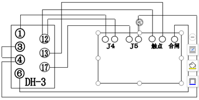继电保护测试仪按上图接线,(3)(4)接J5黑柱(负端),(17)接J5红柱(正端)