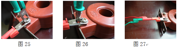 四端法接线必须注意被测绕组的端子接法。图25的接法是正确接法,图26、27均是错误接法。