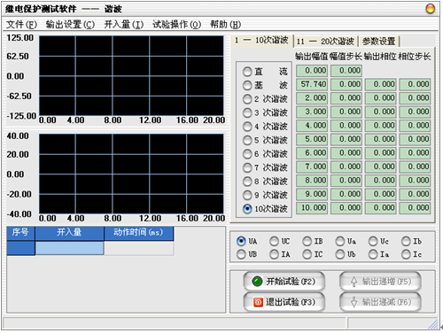 微机继电保护测试仪基波:50.0Hz,幅值、相角。