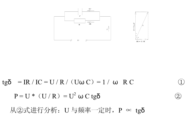 由于 C=E S/D 对于同类型的电介质,其E是定值,电容基本不变,则可以直接从 tg 值判断绝缘的优劣,是否整体性受潮或者表面脏污等。