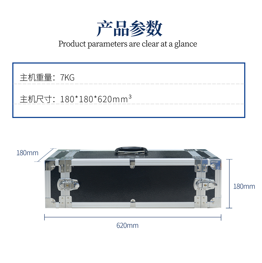 采用便携式结构,整机用铝合金包装箱作机壳,可方便地拆装。体积小、重量轻,便于携带,使用十分方便。