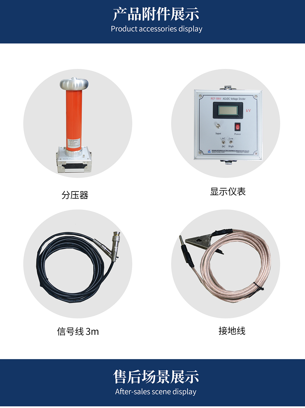 本产品作为高电压测量之理想设备,主要用于电力系统及电气电子设备制造部门测量工频交流高电压和直流高电压。本仪器由高压分压器和低压显示表两部分组成,两者采用配套电缆连接使用。