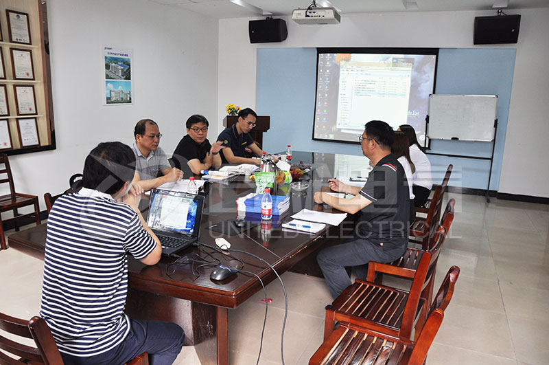 考察验收过后,台湾客户与公司负责人及技术人员就我司冲击电压发生器、变压器综合测试系统的品质、技术、生产等方面进行了深入详细地交谈,并就业务合作事项进行了沟通、洽谈,确认了变压器综合测试系统的采购意向。对合众电气良好的工作环境、有序的生产流程、严格的质量控制、和谐的工作氛围留下了深刻的印象。