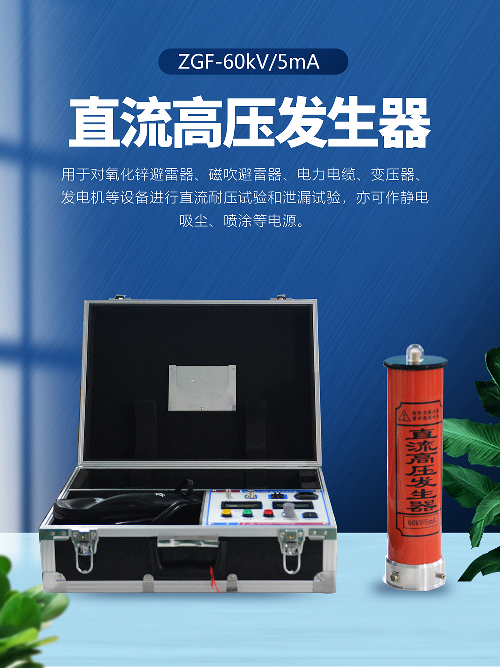 产品别称:ZGF直流高压发生器、直高发、直流泄漏测试仪、泄漏电流测试仪、高压发生器、中频直流高压发生器、便携式直流高压发生器、直流高压发生器。