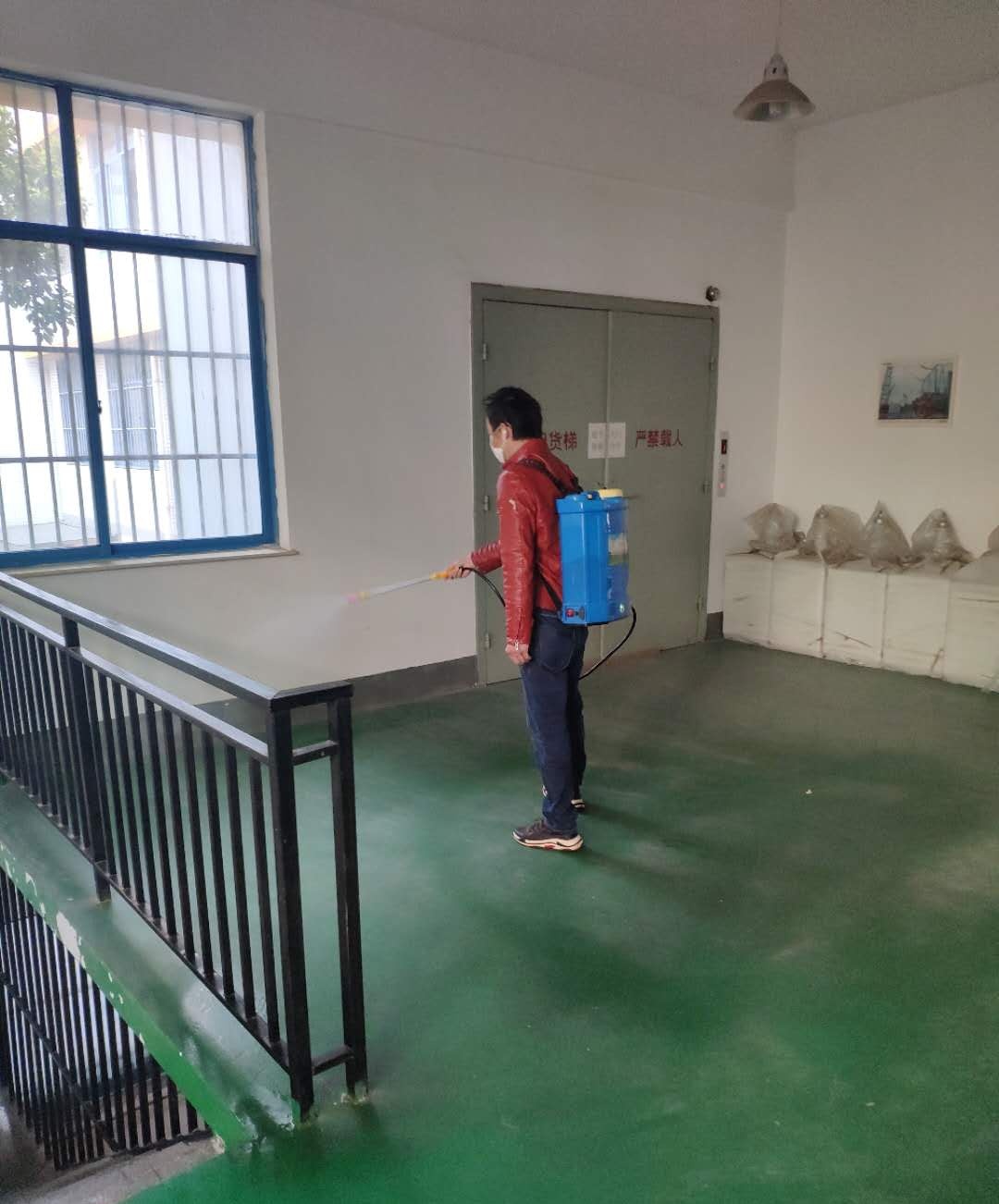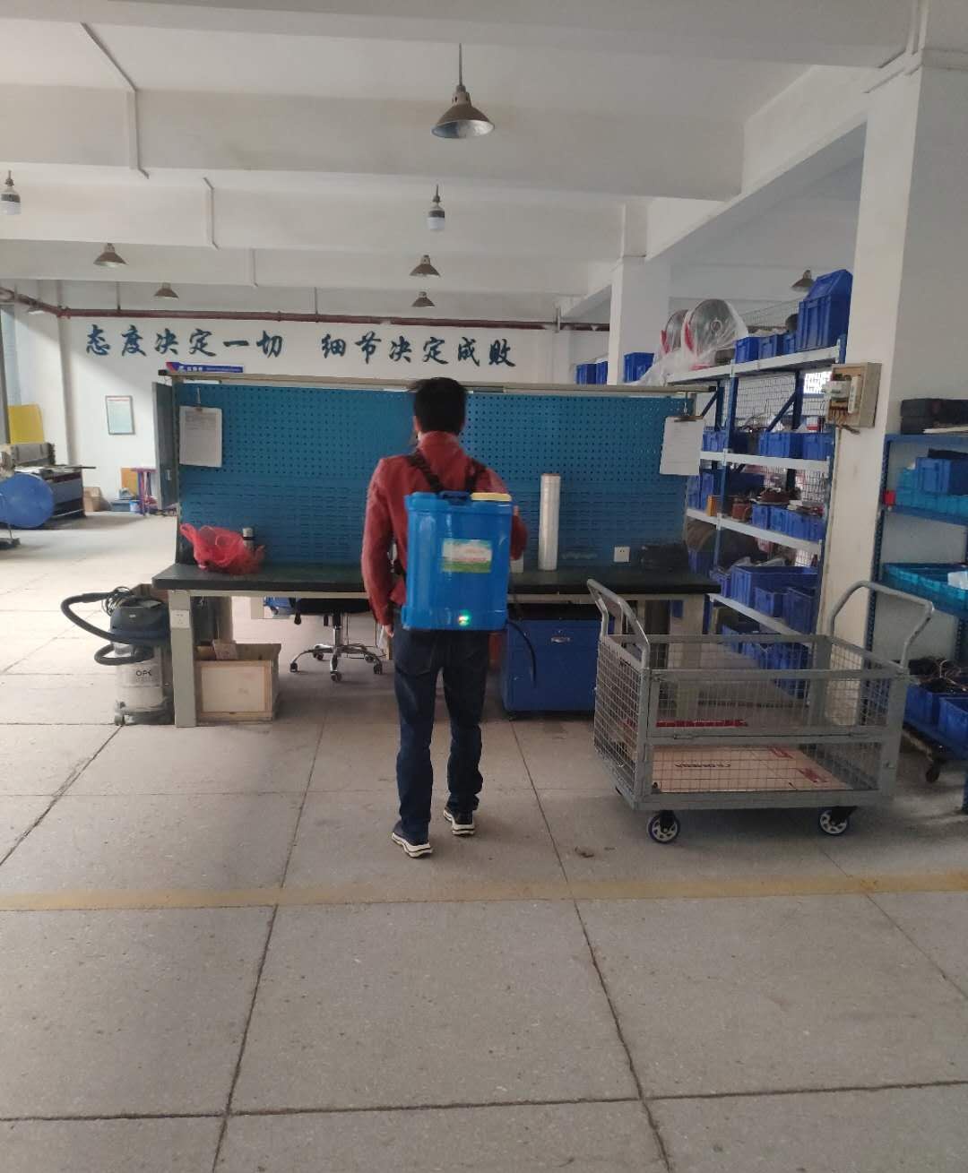 在正式复工之前,公司安排了专业的消毒人员,对公司办公区域,生产制造车间,办公走廊,楼梯间,包括公司用车,整个公司厂区的里里外外进行了全面的消毒清洁工作。