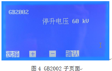 4. 在图2页面下,按 选择 键移动光标√ 至GB2002处,按 确认 键即可进入国标2002设置子页面(图4)。