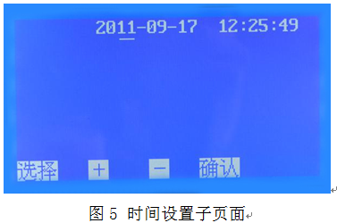 5、在图2页面下,按 选择 键移动光标√ 至时间设置处,按 确认 键即可进入时间设置子页面(图5)。
