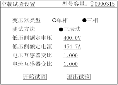 2)在主界面中选择空载试验,则显示空载试验设置界面如下图: