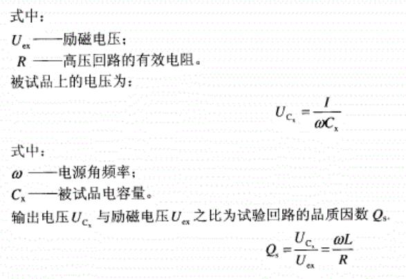 由于试验回路中的R很小,故试验回路的品质因数很大。在大多数正常情况下,Q,可达50左右,即输出电压是励磁电压的50倍,因此用这种方法能用电压较低的试验变压器得到较高的试验电压。由于试验时回路处于谐振状态,回路本身具有良好的滤波作用,电源波形中的谐波成分在被试品两端大为减少,通常输出良好的正弦波形电压。