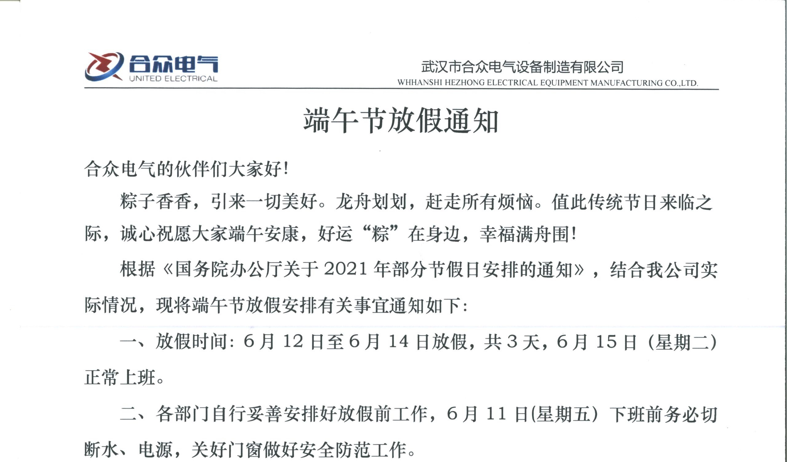 在此,武汉市合众电气也祝广大新老客户,节日愉快,端午安康。