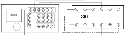 微机继电保护测试仪在直流试验中,用手动试验方式,设置 Ia 为中间继电器保持电流,Uab为 220V(Ua为+110V,Ub为-110V)作电容充电电压,Uc为+110V。按下“确认”,“开始”输出220V 电压。
