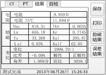 智能互感器测试仪对于不同级别的CT和所选的试验项目,试验结果也不同,见表3。