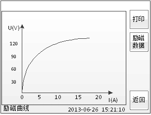 在图2.4或图2.6的测量结果页面,选择励磁结果,将出现励磁曲线界面,如图2.13: