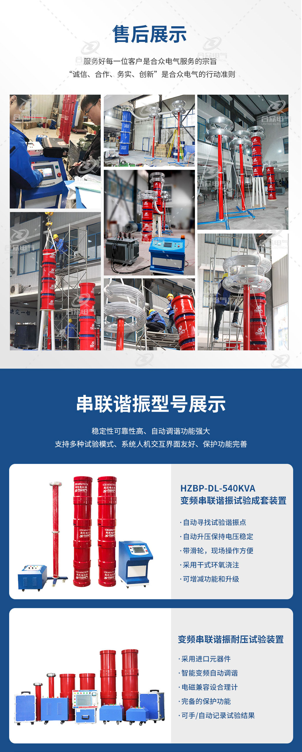 合众电气作为串联谐振生产制造的老厂家,研发技术底蕴深厚,售后服务体系完备完善,目前已为千余家客户提供过串联谐振相关售后服务。