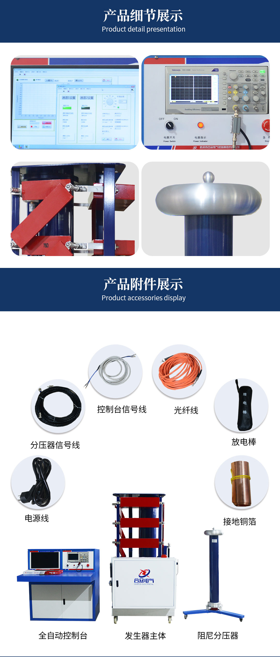 适用范围:变压器、户外断路器、互感器、电抗器、避雷针、开关及其它高压电器、高压晶闸管阀SVC(HVDC)、电力电缆、各类高压绝缘子、套管等试品的标准雷电冲击,雷电截断波,操作冲击及用户要求的非标准冲击波的各类冲击电压试验。一套设备就可产生多种试验波形(标准的和非标准的波形,用户提出来的波形)。 适用领域:质检鉴定计量检测监督机构,电力设备制造厂,铁路通信,航空航天和航空航天飞行器,军工科研单位,大专院校以及气象等部门的防雷和雷电试验。