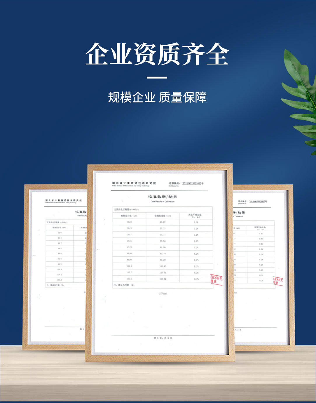 11、六项保护使用更安全:高压电压保护、低压电压保护、高压电流保护、低压电流保护、高压过压保护、高压闪络保护;