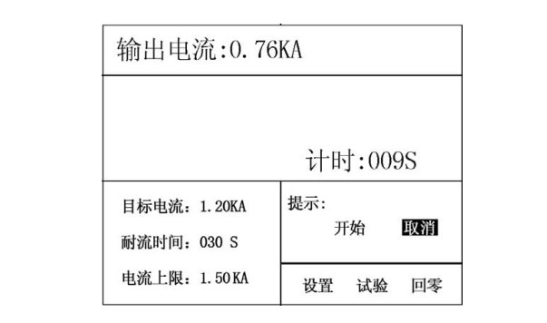 结果显示区:用来显示试验结果数据,显示计时时针、平均输出电流或最大输出电流、耐流时间或冲击时间等。