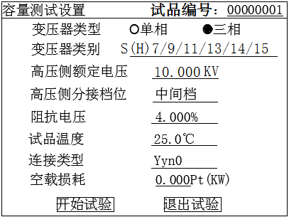 空载损耗:当系统设置中的“空载损耗是否参与容量测试”选择“是”时才会出现此设置项,此处的值可以自动记录上次测量空载时的结果并显示,也可以更改,如需要精确判断型号应当设置此项,否则设为0。