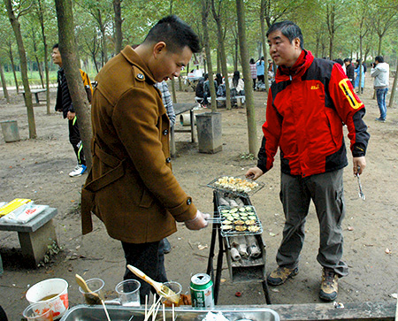 武汉的冬季已经充满寒意,特别是刚下过雨之后。但在农耕年华却是另外一番景象。几组朝气蓬勃充满活力的团队正积极地准备着烧烤的食材。大家积极配合,一起动手,忙中透着轻松快乐的气氛。